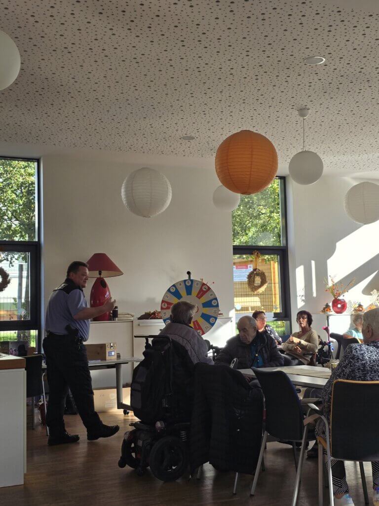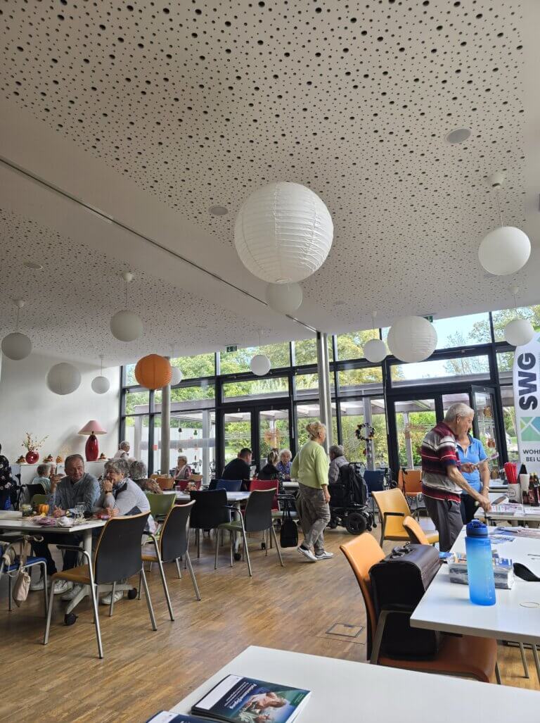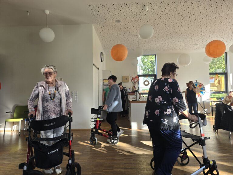 Unter Anleitung konnte der Rollator-Führerschein auf dem neu errichteten Rollatorparcours und im Garten erworben werden. Zusätzlich wurden Informationen über die sportliche Anwendung von Rollatoren bereitgestellt, um die Ausdauer zu stärken und so lange wie möglich mobil zu bleiben. Auf der Terrasse konnten sich alle über die Geschichte des Rollators und verschiedene Modelle informieren. Darüber hinaus gab es Beratungs- und Informationsstände zu den Themen Gleichstellung, Pflege und Gesundheit und Inklusion. Darüber hinaus gab es Beratungs- und Informationsstände zu den Themen Gleichstellung, Pflege und Gesundheit und Inklusion.