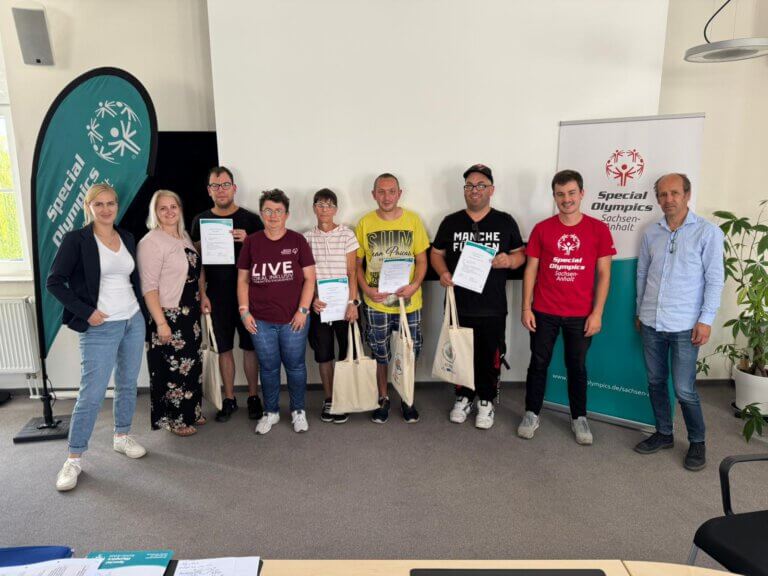 Menschen mit Beeinträchtigungen können so vor Ort selbst aktiv werden und auch ihre eigenen Interessen einbringen und vertreten. Die zweitägige Schulung in Sangerhausen bot den Teilnehmenden wertvolle Erfahrungen und praxisnahe Einblicke in das Thema Inklusion. Zentral waren dabei die Rechte von Menschen mit Behinderung sowie praktische Übungen, wie das überzeugende Vertreten eigener Standpunkte, Durchführen von Interviews oder freies Sprechen vor einer Gruppe. Die Schulung wurde von Georg Melzer und Karl Schäfer von Special Olympics Sachsen-Anhalt durchgeführt. Begleitend stand bereits eine engagierte Teilhabe-Beratende aus Halle (Saale) den Teilnehmerinnen und Teilnehmern zur Seite.